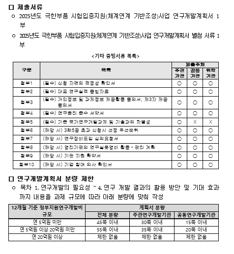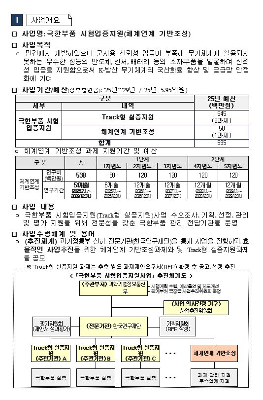 2025년도 극한부품 시험입증지원사업(체계연계 기반조성) 신규과제 공모