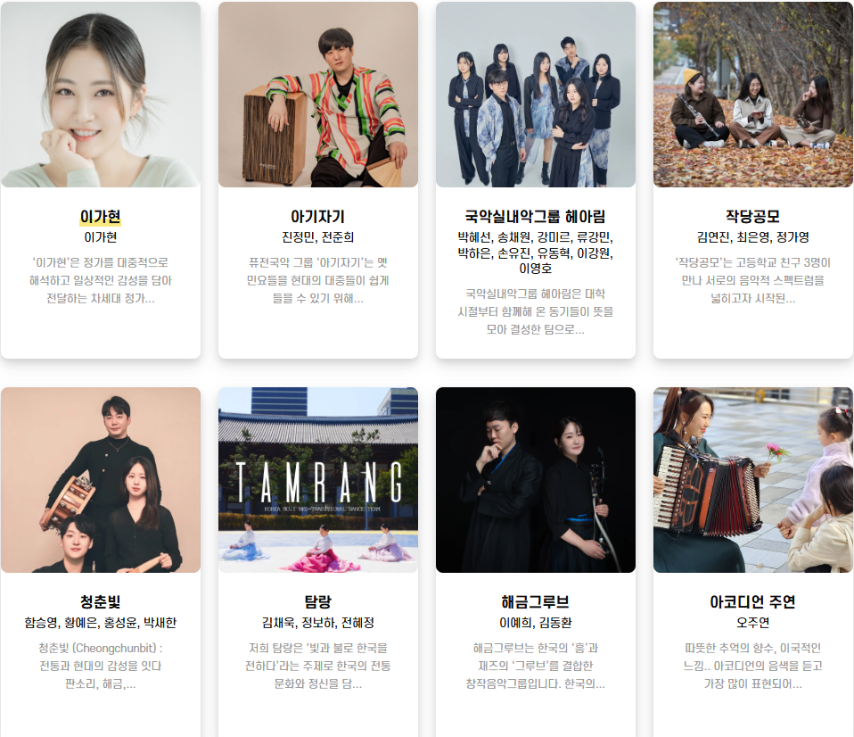 이 공연의 가장 큰 장점은 바로 무료라는 점입니다. 부담 없이 누구나 수준 높은 라이브 공연을 즐길 수 있다는 것이죠. 어쿠스틱 음악, 재즈, 클래식, 국악, 퍼포먼스 등 다양한 장르의 라이브 공연단이 참여하여 매번 색다른 분위기와 감동을 선사합니다. 특정 장르를 선호하지 않아도, 우연히 만난 공연이 새로운 취향을 발견하는 계기가 될 수도 있습니다. 🎶