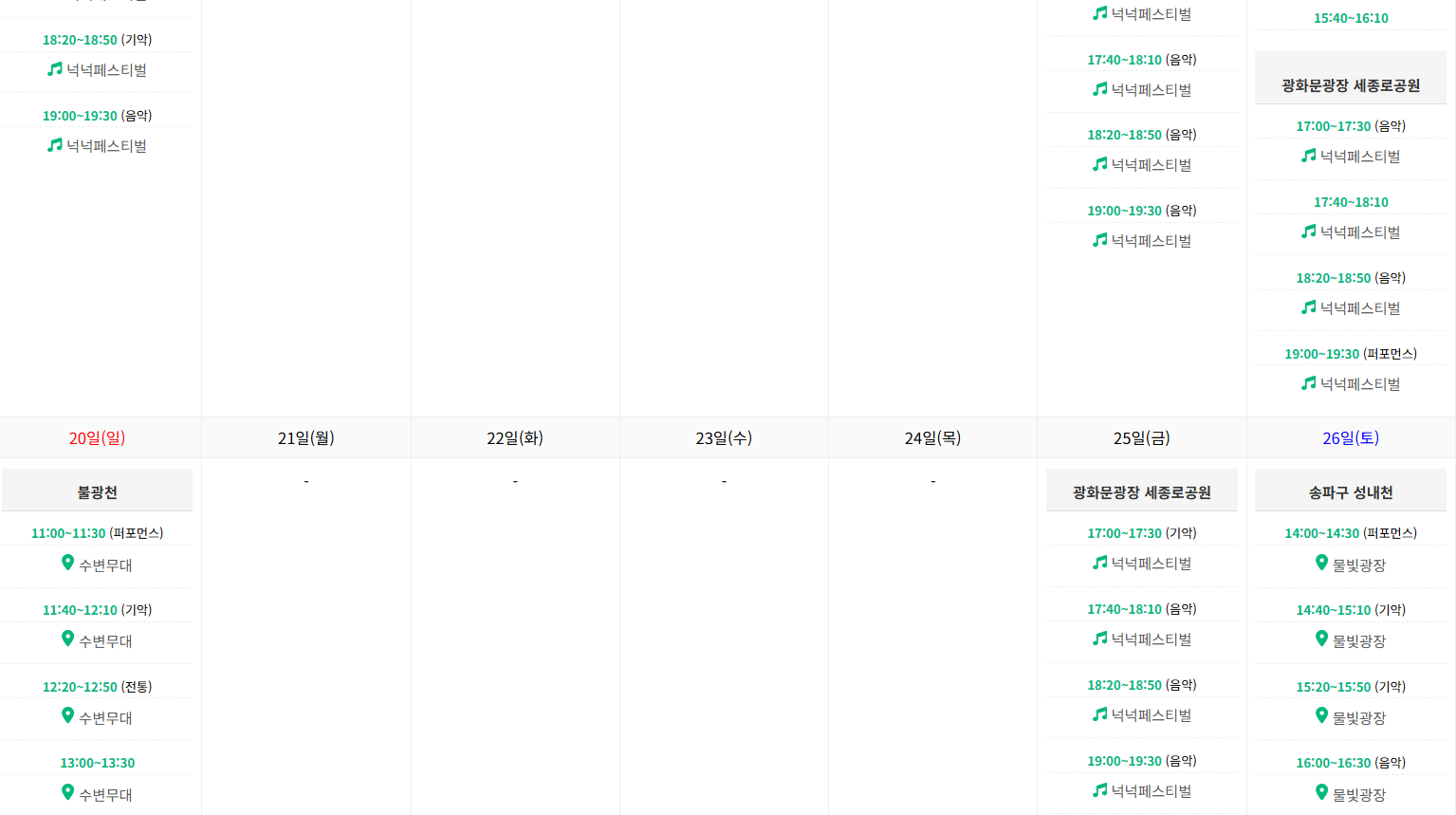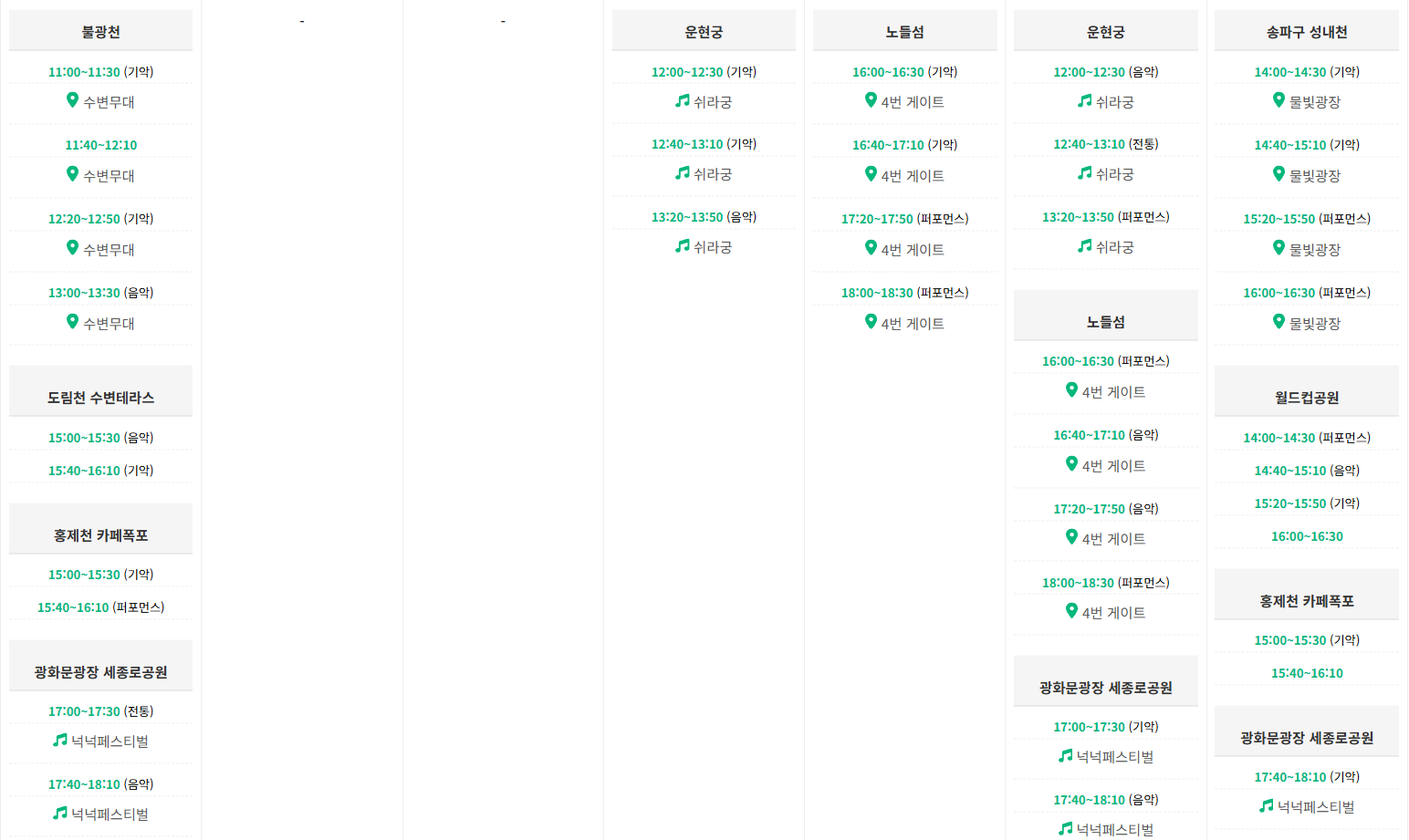 - 공식 홈페이지나 채널에서 스케줄 확인: 방문하려는 장소나 관심 있는 공연 장르를 미리 확인하여 동선을 짜면 좋습니다.