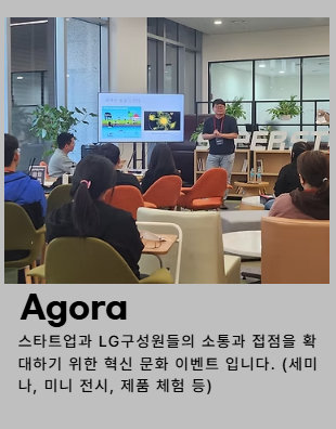 LG와 스타트업이 함께 미래 기술을 논의하는 세션도 준비돼 있어요. 아고라: 고대 그리스의 광장, 자유로운 토론의 장소. 이곳에서 새로운 협업의 씨앗이 뿌려질 거예요.