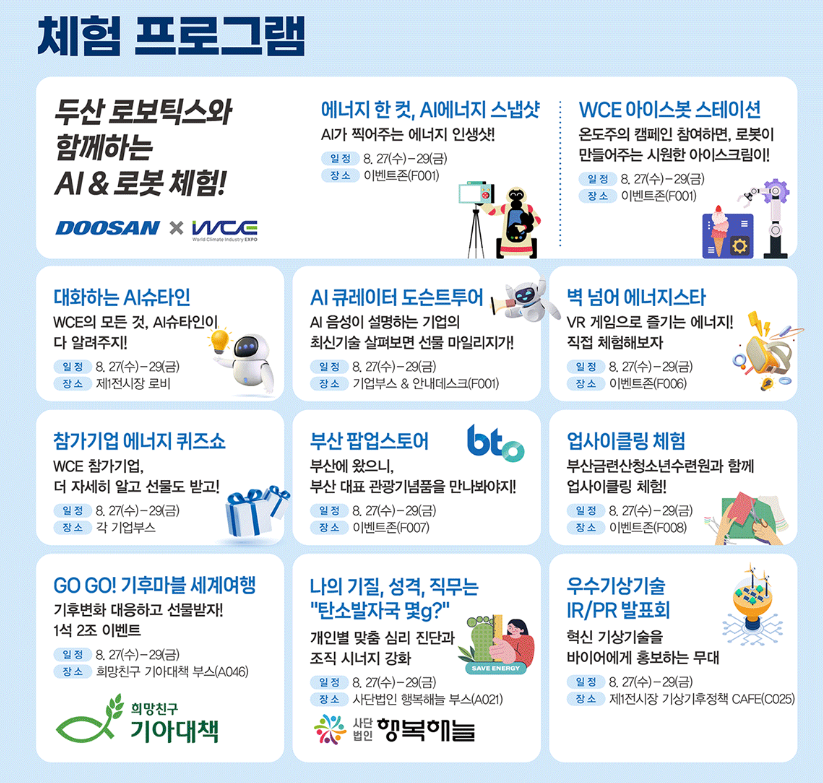 - 주요 전시 분야: 청정에너지, 에너지 & AI, 미래교통, 환경, 해양, 기상.